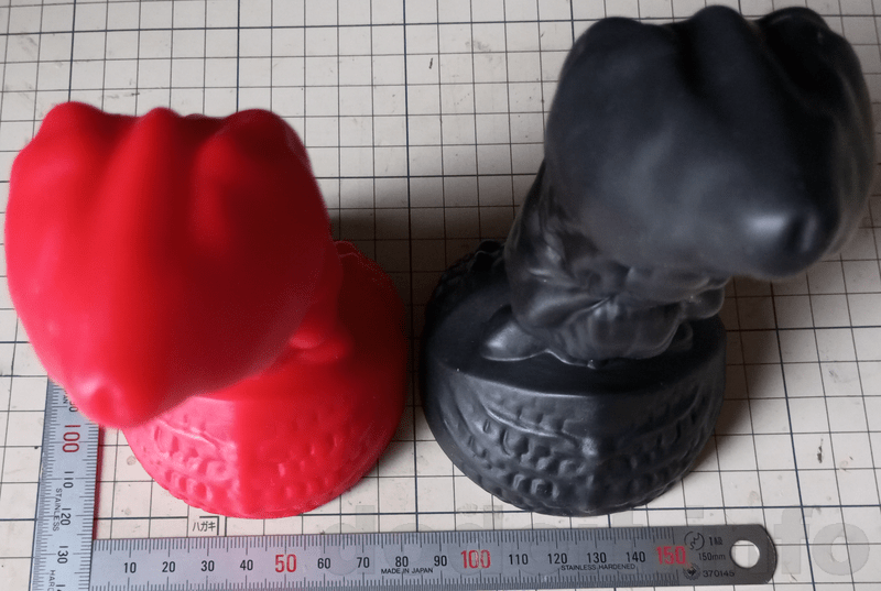 今回は硬さの異なる同形状のディルドの2本目であるため、前回の赤とは異なる色で黒を選択。