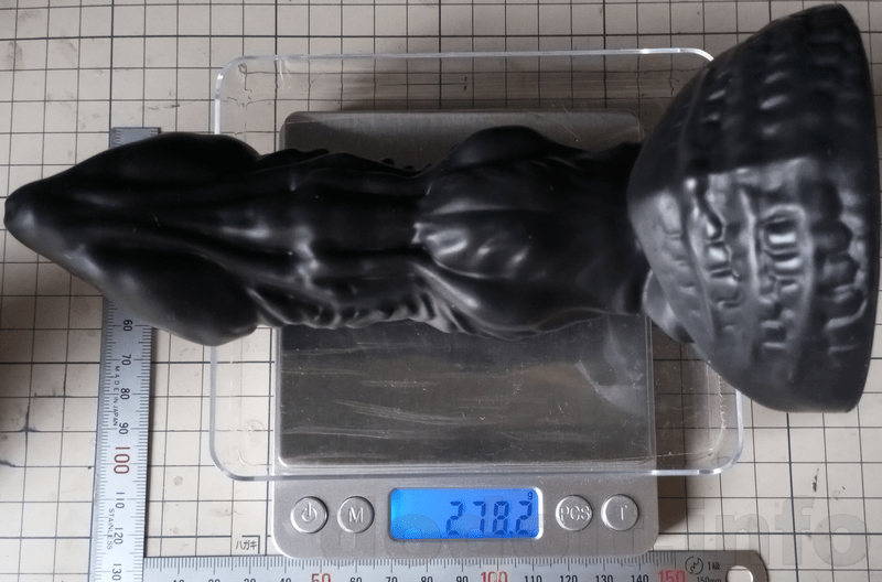 とはいえ、前回記事の『Genesis(ジェネシス)ソフト 実使用レビュー(ディルド アナルグッズ)』で当時はバネ式の古式ゆかしいキッチンスケールでの測定でしたが……すまん、重量はこっちの『凍龍 レギュラー 実使用レビュー(ディルド アナルグッズ)』の記事の中でした、約282gと出ているので……うん、あんまり変わってない。というか、割とバネ式キッチンスケールも精度良く計測出来てたんじゃね。