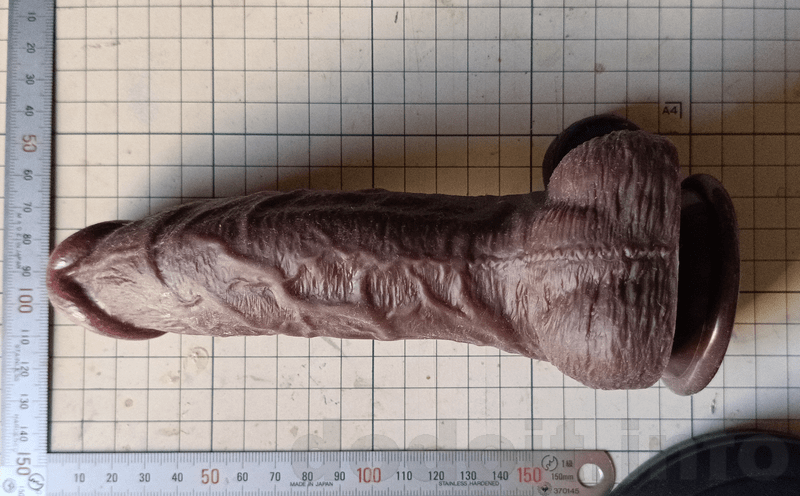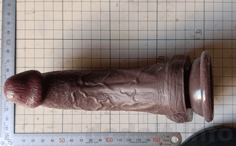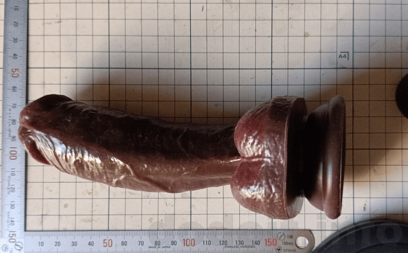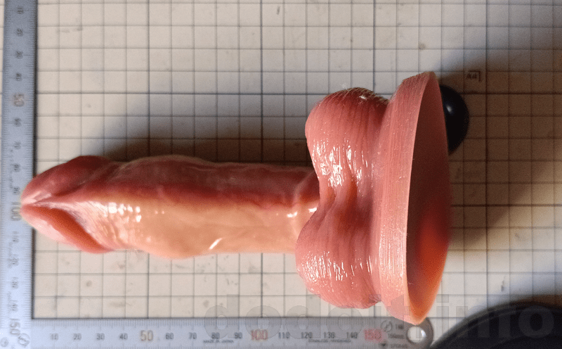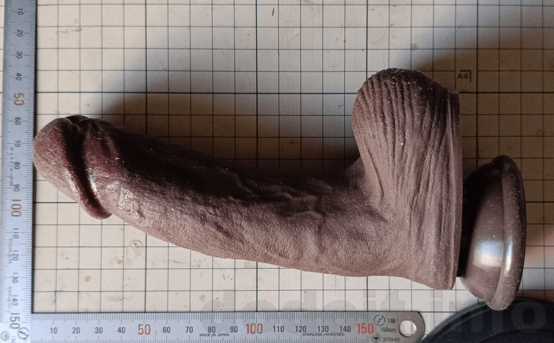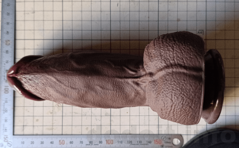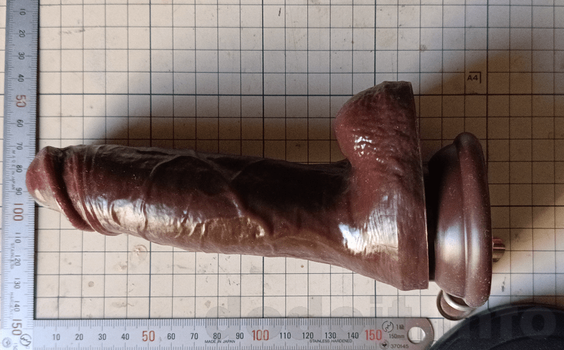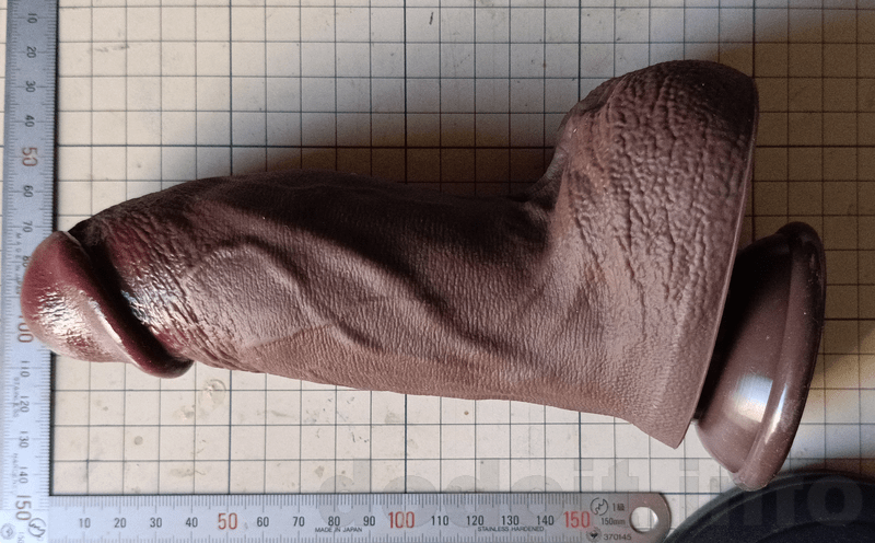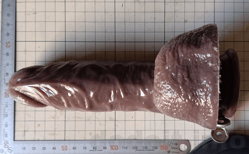 大抵のディルドで根元付近は少々裏筋にあたる造形が出っ張って来るのですが少々であれば挿入出来る範疇としています。ですので、割と玉袋と竿の間の一番窪んでいる部分に近いところから測っていますが、明らかに玉袋が干渉してそこまでは挿入出来なさそうだと思える造形の場合は玉袋の出っ張り部分を起点として測っていたりします。