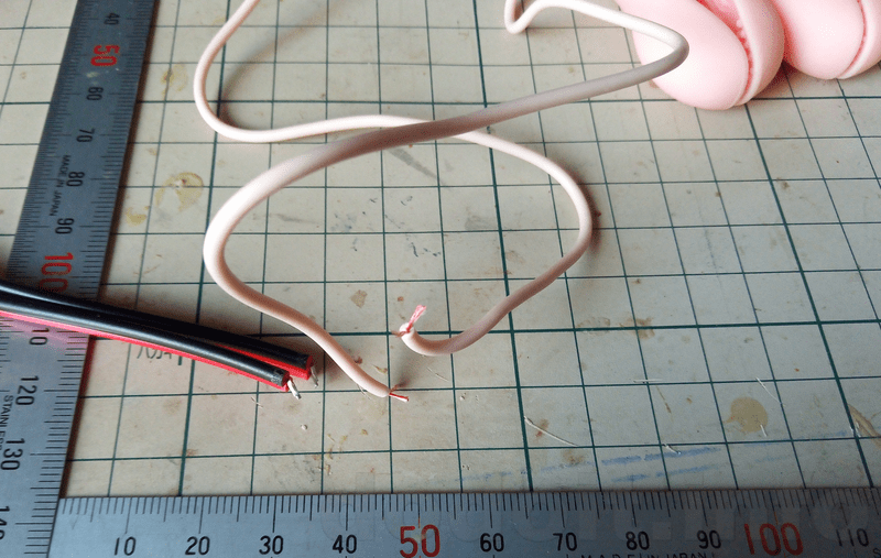 あー、このグッズの配線はエナメル線を何本か束ねているみたいですね。(筆者素人なので間違っていたらゴメンナサイ)