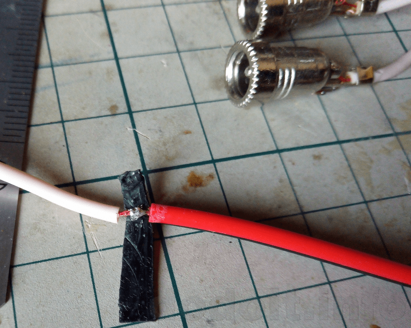 ショートしないように2つの配線の間に絶縁テープを挟み込みましてぐるぐる巻きにします。