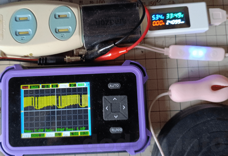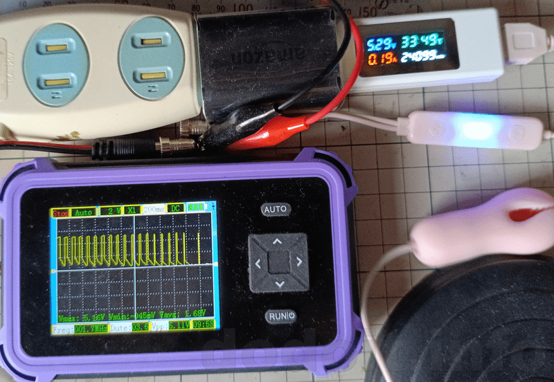 昨年末に購入しまして過去記事『某AliExpressで購入したニップルローター2品 実使用レビュー (乳首責めグッズ)』にてレビューしましたニップルローターの出来の良い方をコネクタ化改造しまして、どのような制御を行っているのかオシロスコープで解析してみました。