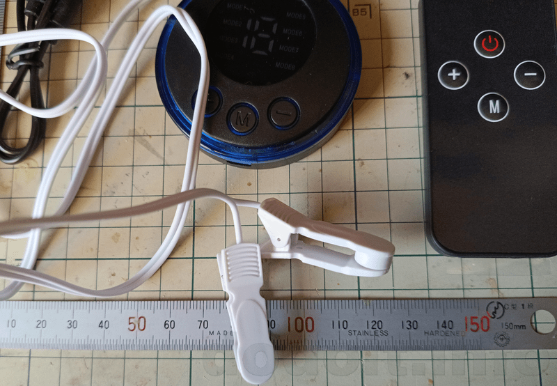 んで、さらに両耳たぶとか挟んで試してみましたが、あれですね、皮膚の柔らかいところだとどうやっても痛いですね。皮膚が厚くて硬めな手のひらとか足裏とかなら普通に使えそう、というか指先挟んだ状態ではまあまあ痛くはありませんでしたからね。